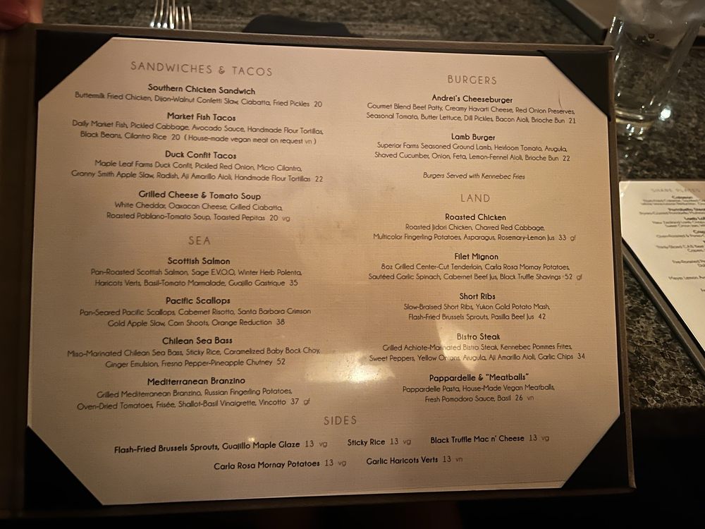 Andrei's Restaurant Menu