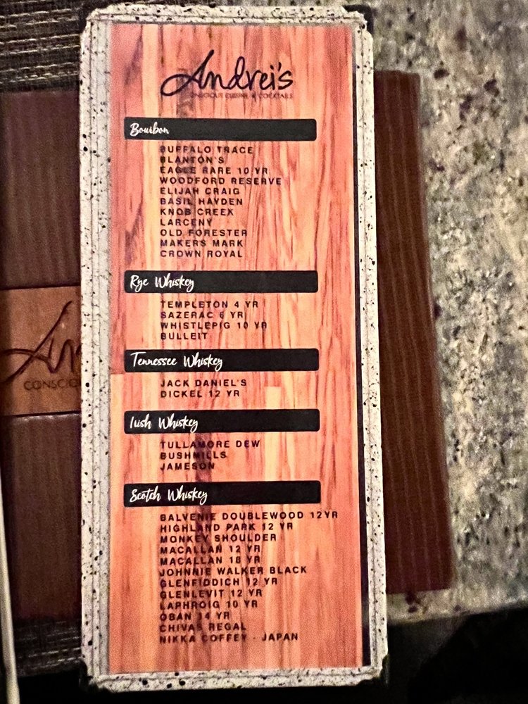 Andrei's also offers a full bar where guests can indulge in their selection of sparkling wines and champagnes. Whether you're dining outdoors in the heated seating or enjoying a private event, Andrei's provides a sophisticated setting paired with attentive service, making every visit a memorable experience.